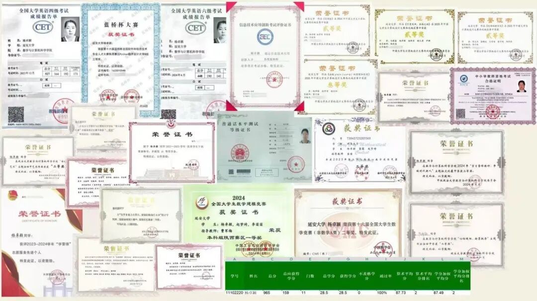 时光回溯到三年前,刚踏入延安大学的杨卓颖和许多新生一样,对未来并无明晰的蓝图。“大一时,就觉得要好好学习,提高绩点,争取奖学金”她坦言。大二时,她当选了学院学生会主席团成员,将很多精力投入到服务同学工作中去,她说:“之前的学习更多是专注于自己的一方书桌,但学生工作让我必须去沟通、去协调、去为集体负责。这种转变逼着我改掉了拖沓的毛病,因为肩上有了一份责任。我更深刻地体会到,大学的成长绝不仅仅是分数,这种统筹规划、与人协作的软实力,是课堂之外更宝贵的财富。”这份历练,为她日后打下了基础,但彼时,她的绩点排名仍在专业25%开外,距离“保研名校”似乎还很遥远。